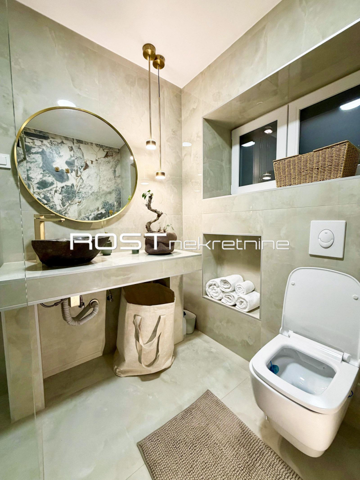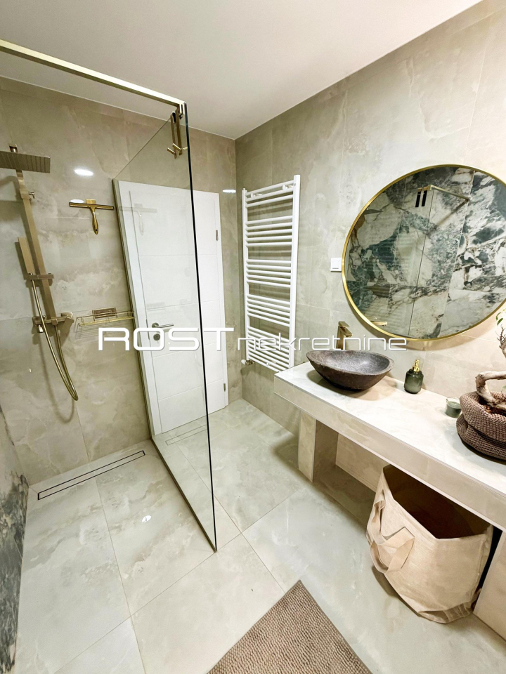 EKSKLUZIVNI POTPUNO NOVOUREĐENI I NOVONAMJEŠTENI TROSOBNI STAN + GARDEROBNA PROSTORIJA (WALK-IN CLOSET) + BALKON (6.00 m2) + TERASA (7.00 m2) + ZAJEDNIČKI VRT (100 .00 m2) + PROSTRANA GARAŽA ZA DVA (2) AUTOMOBILA (37.00 m2) + VANJSKO PARKIRNO MJESTO