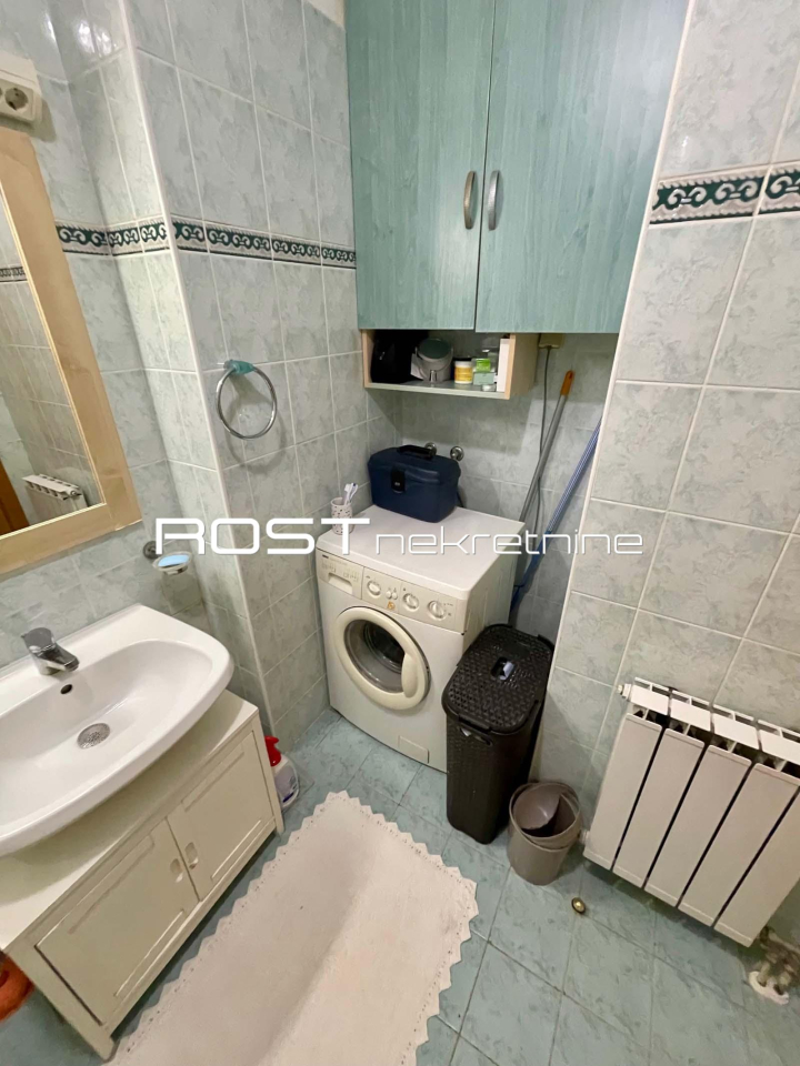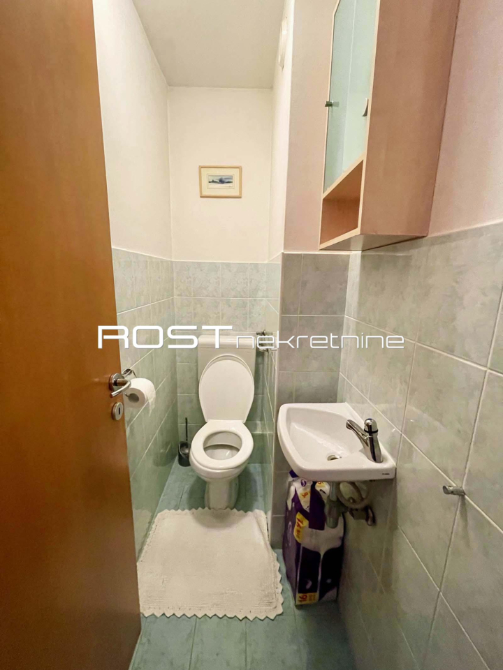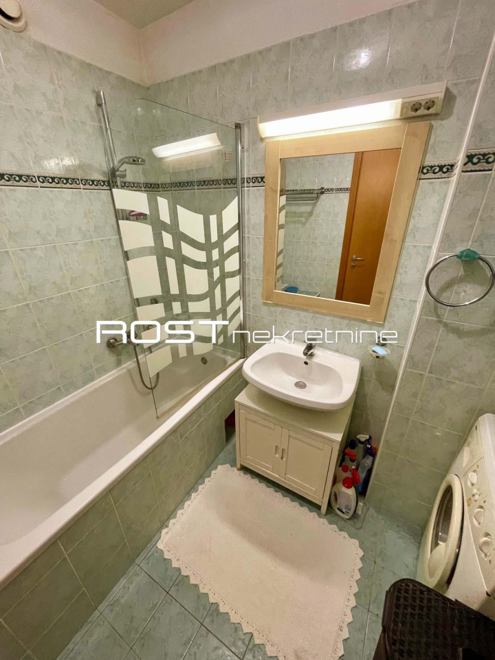 STAN SE SASTOJI od ulaznog prostora zaštićenog protuprovalnim vratima i namještenog sa komodom, kuhinje, atraktivnog, klimatiziranog dnevnog boravka s blagovaonicom u jednoj funkcionalnoj cjelini, spavaće sobe s bračnim ležajem, komodom i prostranim garderobnim ormarom, kupaonice s kadom i ZASEBNOG WC-a.
